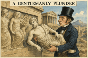 1801–1812 yılları arasında Britanya’nın Osmanlı İmparatorluğu nezdindeki büyükelçisi Thomas Bruce, 7. Elgin Kontu, Atina’daki Parthenon Tapınağı’ndan çok sayıda heykel ve mimari parçayı topladı. O dönemde Yunanistan Osmanlı yönetimi altındaydı ve Elgin, bu eserleri toplamak için Osmanlı yetkililerinden izin aldığını öne sürdü. Ancak bu izin ve uygulamanın meşruiyeti tarihsel olarak oldukça tartışmalıdır. Toplanan eserler, daha sonra British Museum’a satılarak kalıcı koleksiyonun bir parçası haline geldi ve hâlâ orada sergilenmektedir.