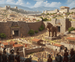 - Maddi kültür varlıkları üzerinden Troya Savaşı'nın hiç unutulmadığı vurgulanır. Örneğin, MÖ 7. yüzyıldan kalma bir vazo üzerinde Troya Atı betimi ve içinde insanların olduğu tasvirleri buna kanıt olarak gösterilir.